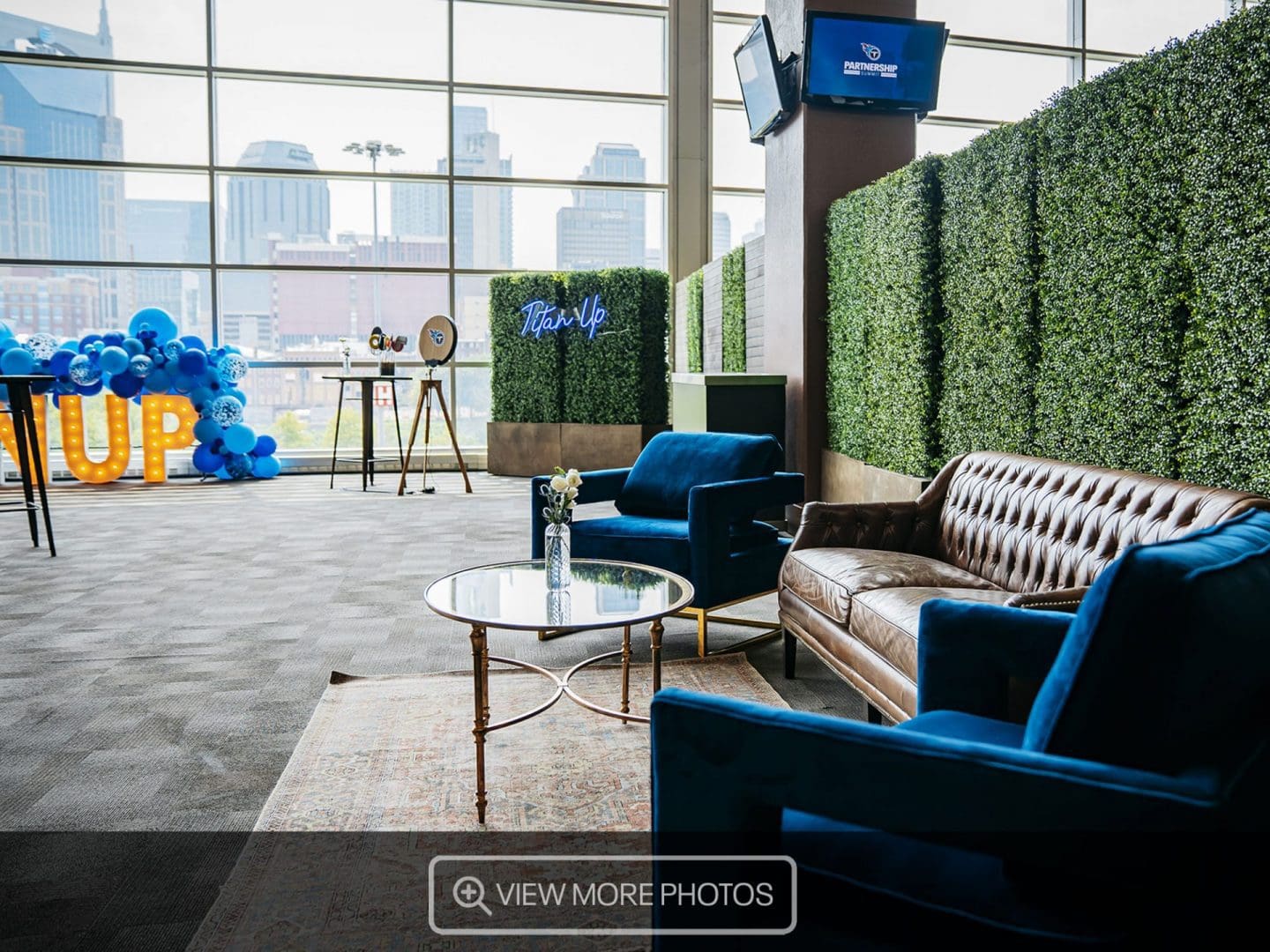 Experience breathtaking views of downtown Nashville from our stunning Nashville event space featuring floor-to-ceiling window walls. The West Club stands out as our premier interior venue, complete with two built-in bars, expansive video walls, 22 mounted TVs, access to the stadium seating bowl, complimentary WiFi, and two distinct lounge areas perfect for breakout sessions, meetings, or additional event space. Additionally, rental of this space includes a selection of essential event furniture such as 72” round tables, 6’ rectangle tables, 48” square tables, 30” high top tables, club chairs, and convenient on-site parking.