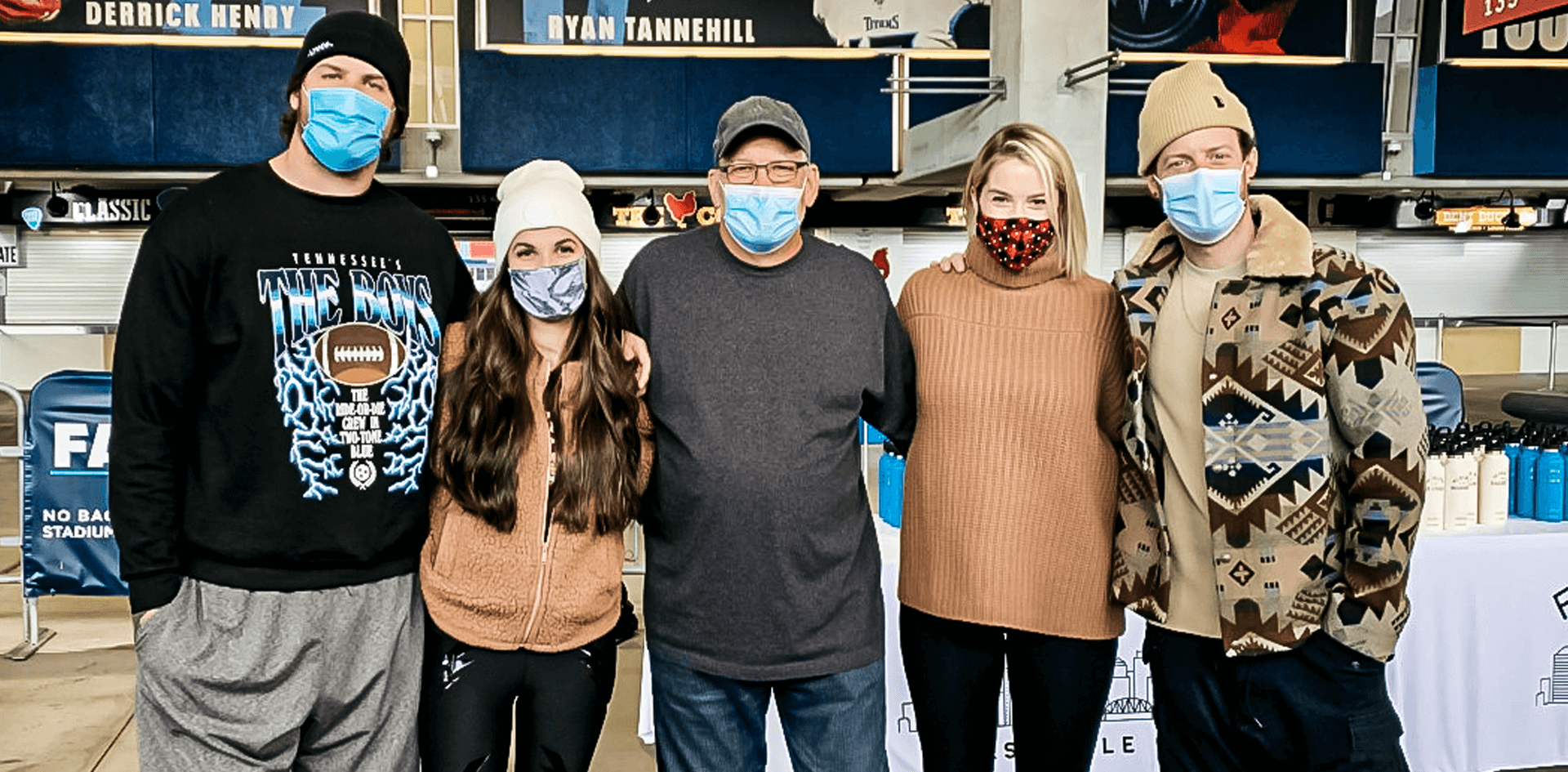 NASHVILLE — On the day before Thanksgiving, Taylin and Taylor Lewan (Titans Pro Bowl offensive tackle) and Hayley and Tyler Hubbard (Florida Georgia Line) distributed pre-ordered Thanksgiving meals at Nissan Stadium that fed up to 700 people. They were joined by volunteers from the Tennessee Titans staff.