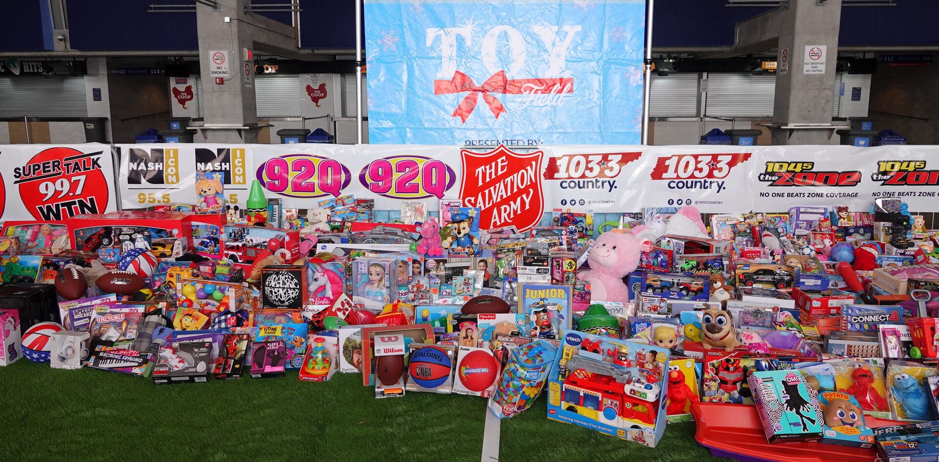 NASHVILLE — Cumulus Nashville radio stations 103-3 Country, 104-5 The Zone, 92Q, Super Talk 99.7 WTN and 95.5 NASH ICON collected thousands of toys and gifts for seniors in need at the 13th annual Toy Field presented by T-Mobile to benefit The Salvation Army’s Forgotten Angel Program at Nissan Stadium.