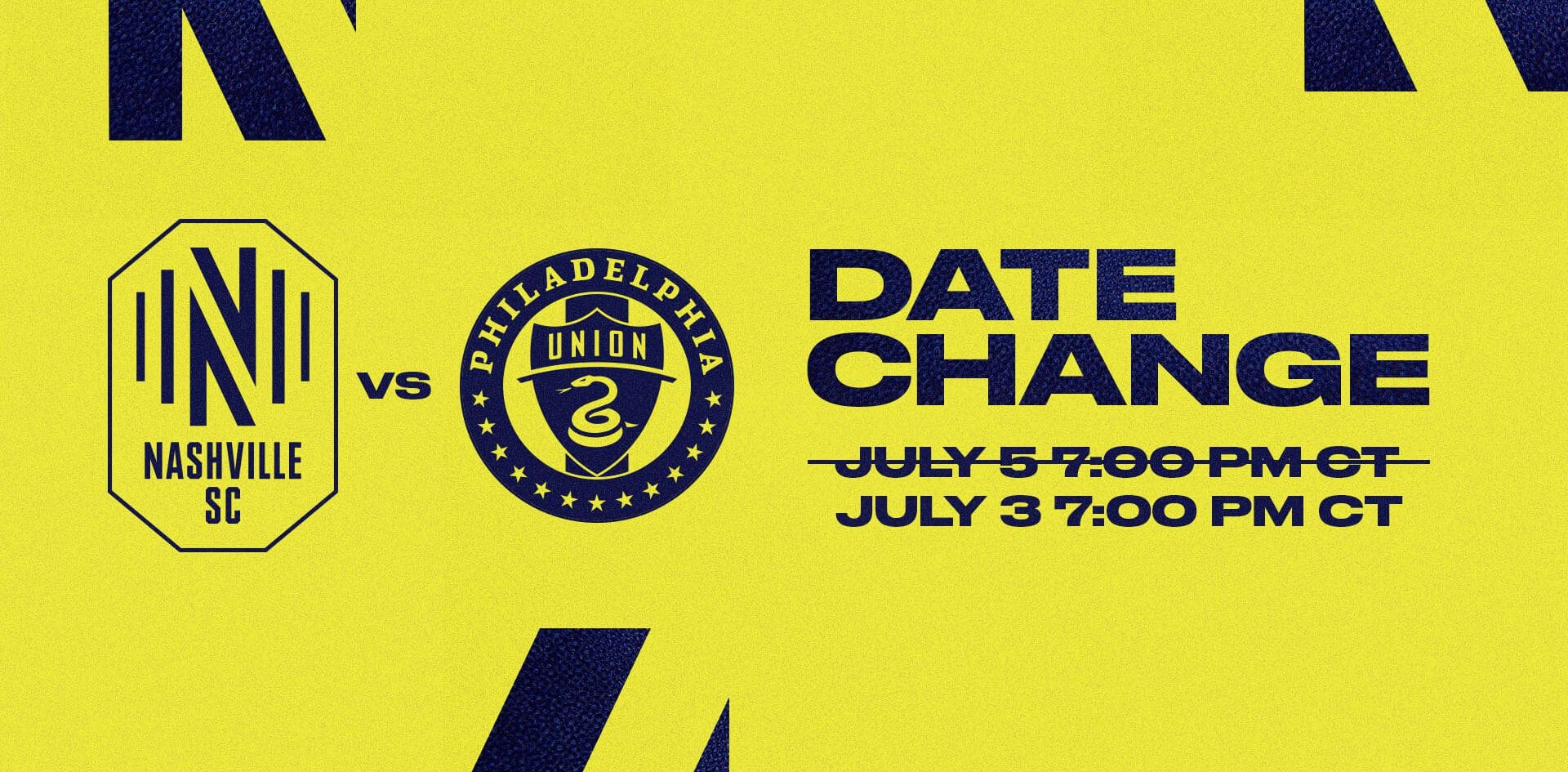 NASHVILLE, Tenn. (May 13, 2021) – Nashville Soccer Club announced today that the club’s match against Philadelphia Union originally scheduled to take place on July 5 has been moved to Saturday, July 3 with kickoff slated for 7 p.m. CT at Nissan Stadium.